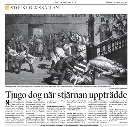 Kalabalik med tragiska följder uppstod när världsstjärnan Christina Nilsson gav en gratiskonsert från Grand Hotels balkong.