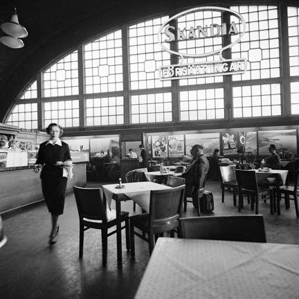 Centralstationen, interiör. Restaurang. Reklamskylt för försäkringsbolaget Skandia
