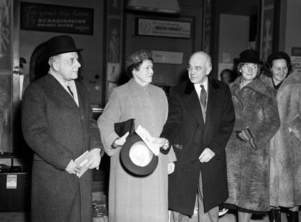 Nobelpristagare anländer till Stockholm, fr. v Cecil F Powell (fysik) och Edward Calvin Kendall (fysiologi och medicin)
