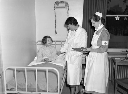Karolinska Sjukhuset, barnkliniken. Sjukhuspersonal och patient