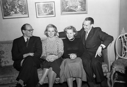 Simförbundets presskonferens om svenska simmarflickors moral. Simmarflickorna blev efter beskyllningar för omoraliskt uppträdande av en Österrikisk tidning rentvådda