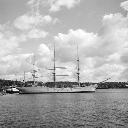 Segelfartyg VID Beckholmen med Djurgården i bakgrunden