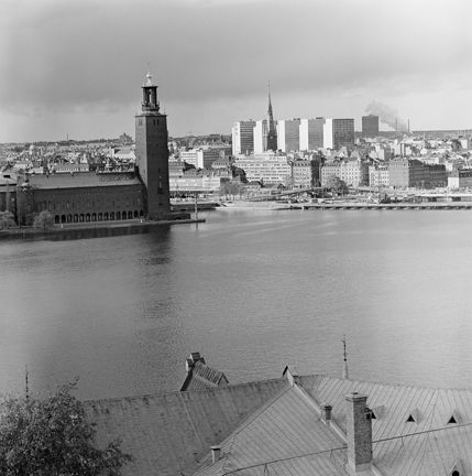 Utsikt från Skinnarviksberget över Riddarfjärden mot Stadshuset och Norrmalm. I förgrunden Münchenbryggeriets tak