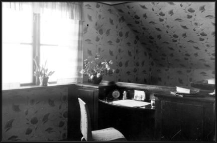 Interiör från hallen i vindsvåningen på Wormsövägen 21 i Enskede småstugeområde