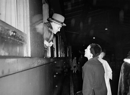 Ralph Bunche ankommer till Stockholm med tåg för att mottaga Nobels fredspris