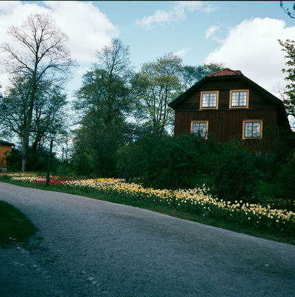 Skansen. Tulpaner vid södra gaveln av Röda Längan