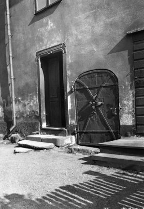 Gårdssidan vid Bondegatan 4, nuvarande 10. Dörren av järn leder till källaren