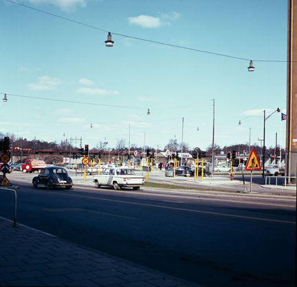 Slutet av Norrtullsgatan mot Norrtull. IC- och Gulf-mackar i bakgrunden