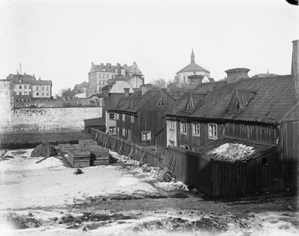 Erstagatan 16-20. Kv. Fyrtornet norrut från Åsögatan. Kv. Ersta i fonden. Tidigare kv. Beckbrännaren Större