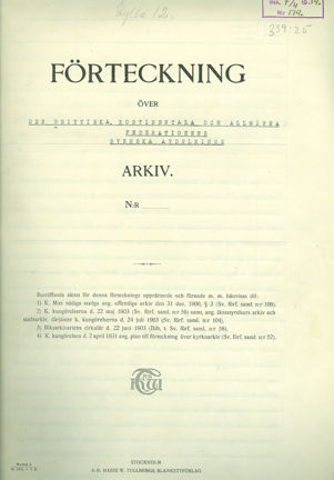 Arkivförteckningen upprättad i Stadsarkivet av Gustav Sjöberg den 6 april 1934.