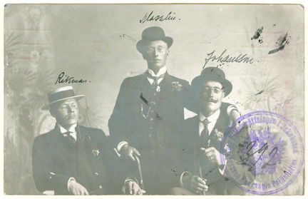 I början av juli 1916 rymde tre finska poliskonstaplar från Jakobstad och tog sig i en stulen motorbåt till Holmsund utanför Umeå. Den 13 juli skickade de ett vykort från Stockholms centralstation, med sig själva på, till polisstationen i Jakobstad. På baksidan av kortet står det: "Hälsa till alla!"