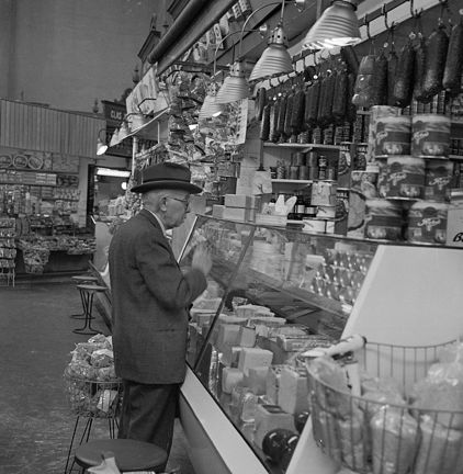 Östermalmshallen, professor Bertil Boethius vid ostdisken