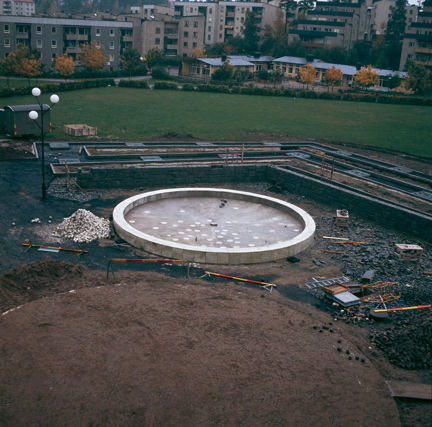 Vällingby. Anläggande av ny damm vid Solursgången. Vy åt norr