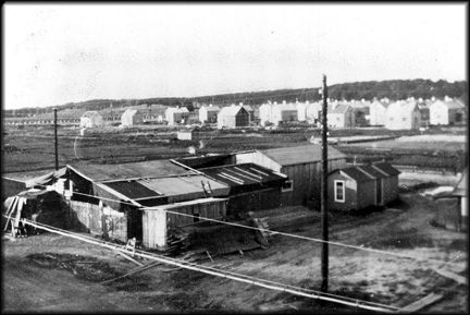 Svenska trähus förråd på Enskedefältet och Enskede småstugeområde under byggnad