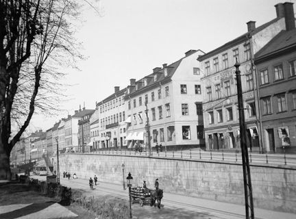Hornsgatan 36-46 västerut. Då kv. Flygaren och kv. Ormen Mindre. Nu kv. Svalgången och kv. Ormen Mindre