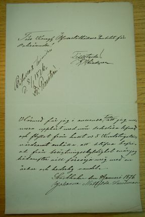 Ibland inkom brev till sedlighetspolisen, som hade ansvaret för att se till att prostituerade kvinnor skrevs in vid Besiktningsbyrån och att de kom till kontrollerna. I det här brevet ber Johanna Mathilda Lundman om att bli befriad från besiktningskyldighet: