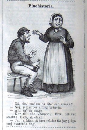 Pinohistoria. Bildskämt om alkoholist i Söndags-Nisse – Illustreradt Veckoblad för Skämt, Humor och Satir, nr 51, den 22 december 1878