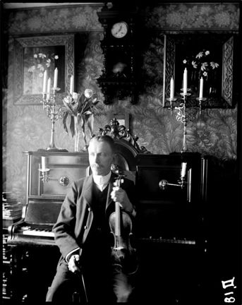 Högbergsgatan 51. Teodor Pettersson vid pianot