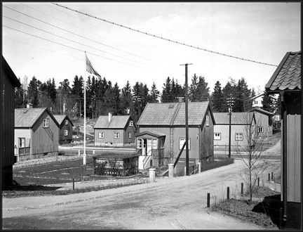 Hörnet av Hildebrandsvägen och Tacitusvägen i Ängbys småstugeområde