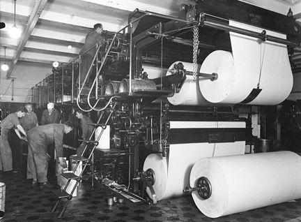 Interiör av Svenska Dagbladets tryckeri med tryckpress, Karudansmakargatan 11