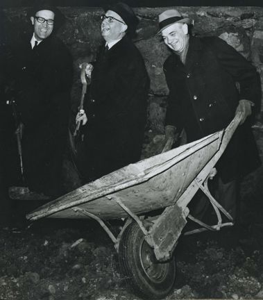 Första spadtaget på Johanneshovs konstfrusna bandystadion 18 december 1964