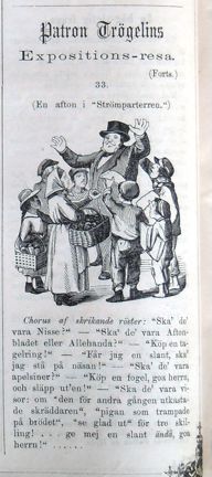 Följ med den småländske patronen Trögelin på hans resa till huvudstaden och Stockholmsutställningen år 1866. I bildsviten får vi se Stockholm och Expositionen med satiriska ögon. Serien är en drift med såväl Stockholm och lantisar som med utställningen som sådan. Läs serien via länkarna nedan!