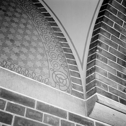 Regeringsgatan 38. Stockholms Gamla Elektricitetsverk. Dekorering i portgången