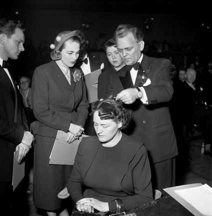 Tunnelgatan 29, Vinterpalatset. Tävling på Frisörernas riksstämmas första dag. En frisyr bedöms