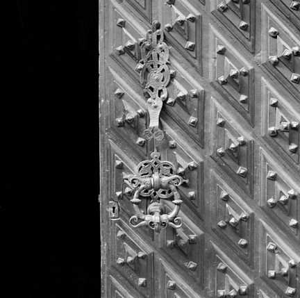 Drottninggatan 23. Portklapp i smidesjärn med beslag
