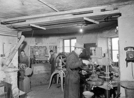 Verkstad i kv. Järngraven Övra. Kvarteret som låg mellan Sjöbergsplan och Södermalmstorg revs 1954