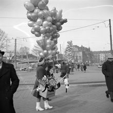 Ballongförsäljning vid Hantverkargatan österut i hörnet av Fridhemsgatan och Fridhemsplan. T.h. Hantverkargatan 87, kv. Slaggen, tidigare kv. Karlsvik