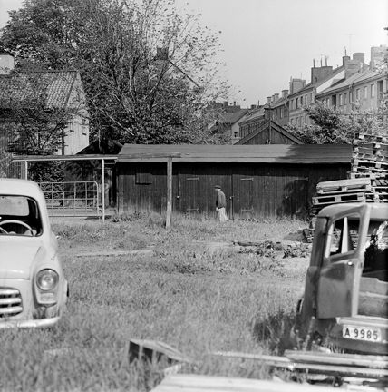 Skånegatan 14. Uthus. Nödbostäder uppförda 1917 inför rivning. Nuvarande Rosenlundsparken