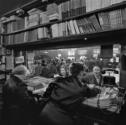 I Svenska Pressbyråns kiosk samsas böcker, tidskrifter, dagstidningar och vykort. Två kvinnor betjänar kunder på språng. När bilden tas finns det flera olika luckor med försäljning på Centralstationen, förutom för tidningar och böcker, bland annat för blommor och tobak.