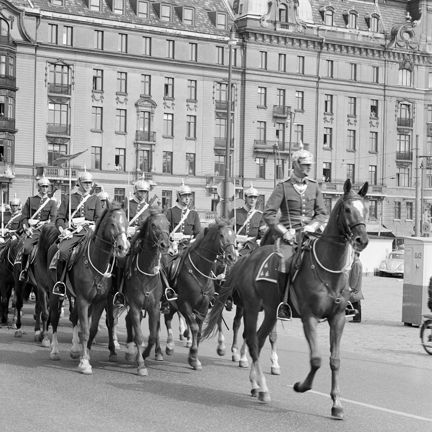 Vaktparaden på Nybroplan med Strandvägen 3 i bakgrunden