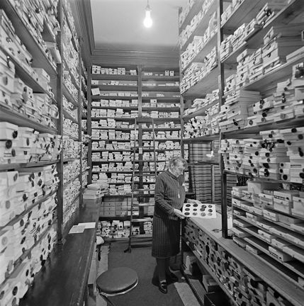 Tyska Brinken 22. AB George Lindström Sybehör och Knappaffär. Askar med knappar