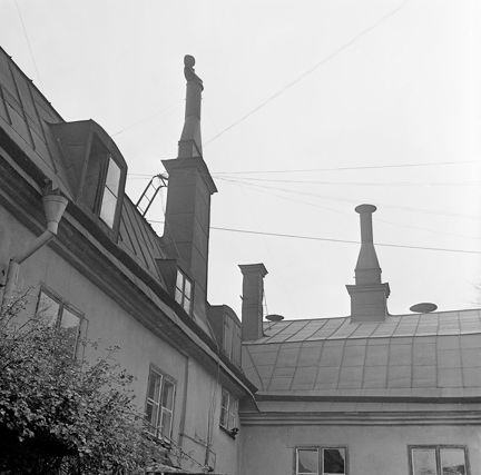 Lundagatan 5. Tak och skorstenar mot gårdssidan. Nuvarande Gamla Lundagatan, kv. Haren
