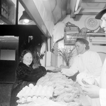 Gamla Hötorgshallen. Kund och butiksbiträde