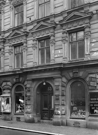 Högbergsgatan 53 före rivning 1950. Portalen och del av fasaden