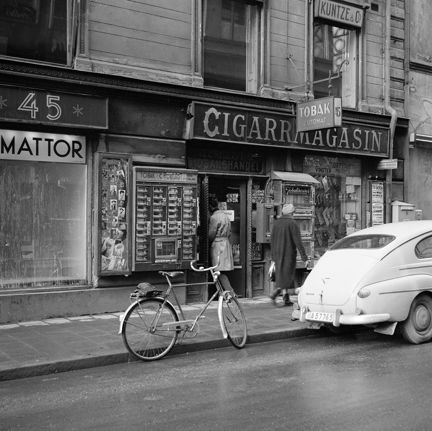 Drottninggatan 45. Tobakshandel, Meijers eftr. Kvarteret består idag av Åhléns varuhus