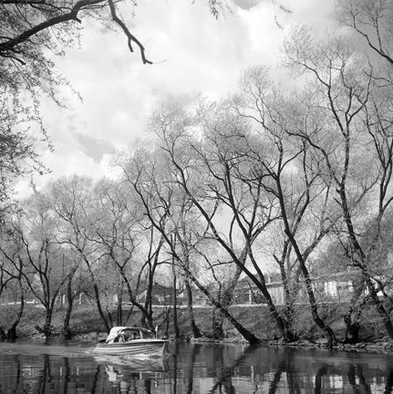En motorbåt på Karlbergskanalen