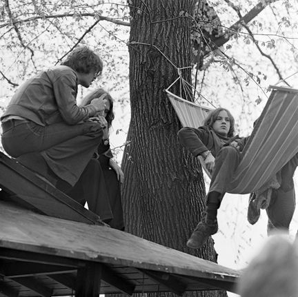 Kungsträdgården, maj 1971. Demonstrationer mot fällningen av almarna