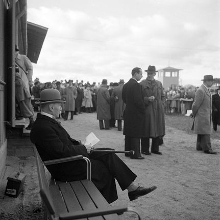 Publik vid Ulriksdals kapplöpningsbana. På stolen sitter Fredrique Hedlund