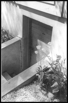 Tjälskada vid källartrappa till hus i kvarteret Mjölskivlingen 3, Sockenvägen 448 i Enskedes småstugeområde