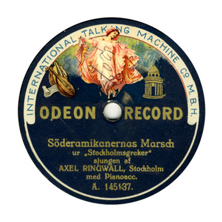 Axel Ringwall sjunger "Söderamerikanernas marsch" i en inspelning från 1912. Ur revyn "Stockholmsgreker" eller "Olympen-Stadsgården-Stadion"
