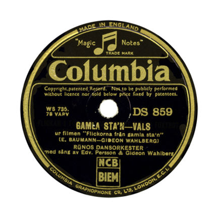 Folkkäre skådespelaren Edvard Persson sjunger tillsammans med Gideon Wahlberg sången "Gamla Stan". Stycket var en av sångerna som ingick i filmen "Flickorna från Gamla sta'n" från 1934.