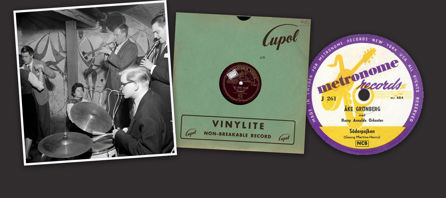 Märtha Ahlberg och Julia Caesar sjunger "Kristins Kornhamnstorgs-tripp till ackompanjemang av Sven Rünos ensemble.