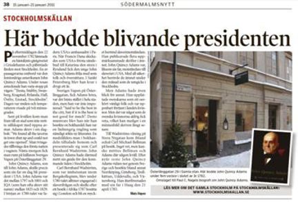 Artikel om den blivande amerikanske presidenten John Quincy Adams stockholmsbesök 1782.