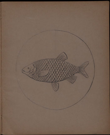 Här ser vi exempel från ett rithäfte med övningar tagna från Stuhlmanns ”Lärobok i frihandsteckning II” från 1872. Teckningarna är kopior av gispreliefer. De är antagligen från början av 1900-talet. De är tyvärr osignerade och vi vet inte heller i vilken skola de skapades.