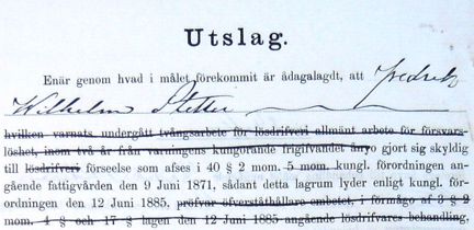 Den 4 augusti året innan hade Stetter frigivts efter ett år och sex månaders tvångsarbete för lösdriveri. Som dömd lösdrivare var han då skyldig att två gånger i månaden anmäla bostad och försörjningsmedel. Denna skyldighet hade han enligt polisens förhörsprotokoll åsidosatt.