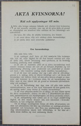 "Alltför ofta bringa männen lidande och olyckor över kvinnorna på det sexuella området, vare sig de göra detta på grund av okunnighet om könslivet eller emedan de äro lättsinniga och samvetslösa." Män utsätter därför, skriver Nyström, kvinnor för två faror - oönskade graviditeter och könssjukdomar.